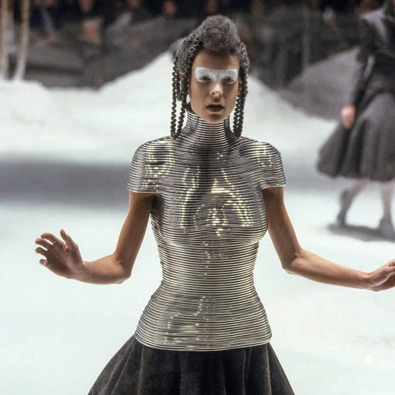 Rather than treating fashion as background, the documentary places McQueen’s collections at the center of its narrative. His career is traced from his East London upbringing and Savile Row training through his MA graduate collection Jack the Ripper Stalks His Victims at Central Saint Martins in 1992, his rapid emergence in London, his years at Givenchy, and the increasingly elaborate, psychologically charged runway spectacles that defined his own house. In this structure, collections such as Highland Rape, No. 13, VOSS, and Plato’s Atlantis operate not simply as milestones in fashion history, but as emotional and biographical chapters in Lee’s life. Bonhôte described the project as “a really respectful cinematic version of Lee’s story,” while Ettedgui explained that they wanted to avoid a television-style treatment and make something immersive enough for the cinema.